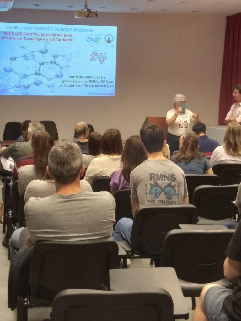 Por su parte la directora del IQUIR, Dra. Sandra Signorella, hizo un recorrido por los temas a abordar durante la jornada: “Introducción de las técnicas de Resonancia Magnética Nuclear. Usos y ventajas de sus aplicaciones en el sector científico-tecnológico. Cartera de servicios de alto nivel para el sector industrial”, a cargo del Ing. Sergio Tindiglia, el Mg. Pablo Duche y la Lic. Fernanda Villalonga.